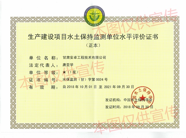【水保資質】生產(chǎn)建設項目水土保持監(jiān)測單位水平評價證書