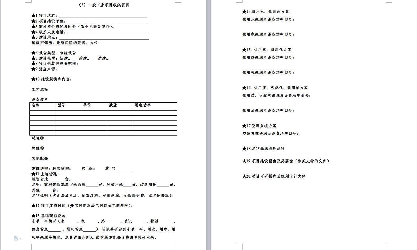 • 節(jié)能評(píng)估所需資料清單