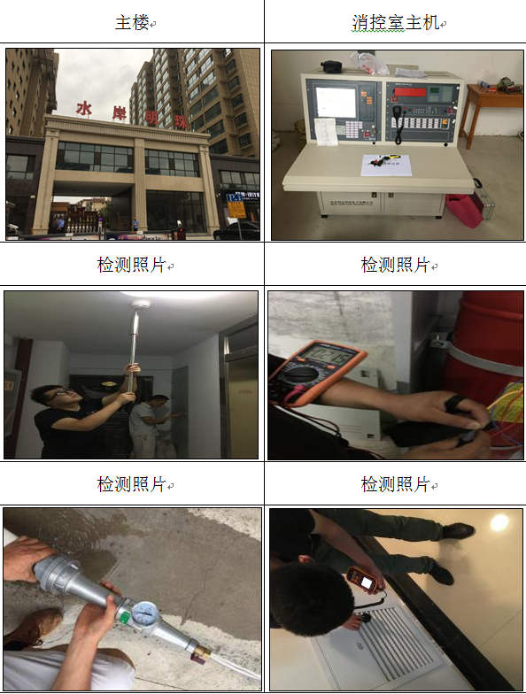 通過(guò)設(shè)備測(cè)試,檢驗(yàn)檢測(cè)等技術(shù)手段,對(duì) 天水水岸明珠 消防安全狀況進(jìn)行定量分析,依據(jù)《建筑消防設(shè)施檢測(cè)技術(shù)規(guī)程》(GA 503—2004)和其他國(guó)家有關(guān)消防法規(guī)和技術(shù)標(biāo)準(zhǔn)對(duì)該單位進(jìn)行檢測(cè)。