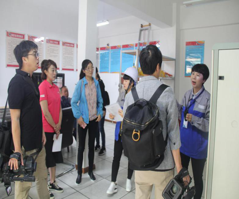 蘭州電視臺參訪人員、零距離采訪人員認真聆聽消防火災控制器主機